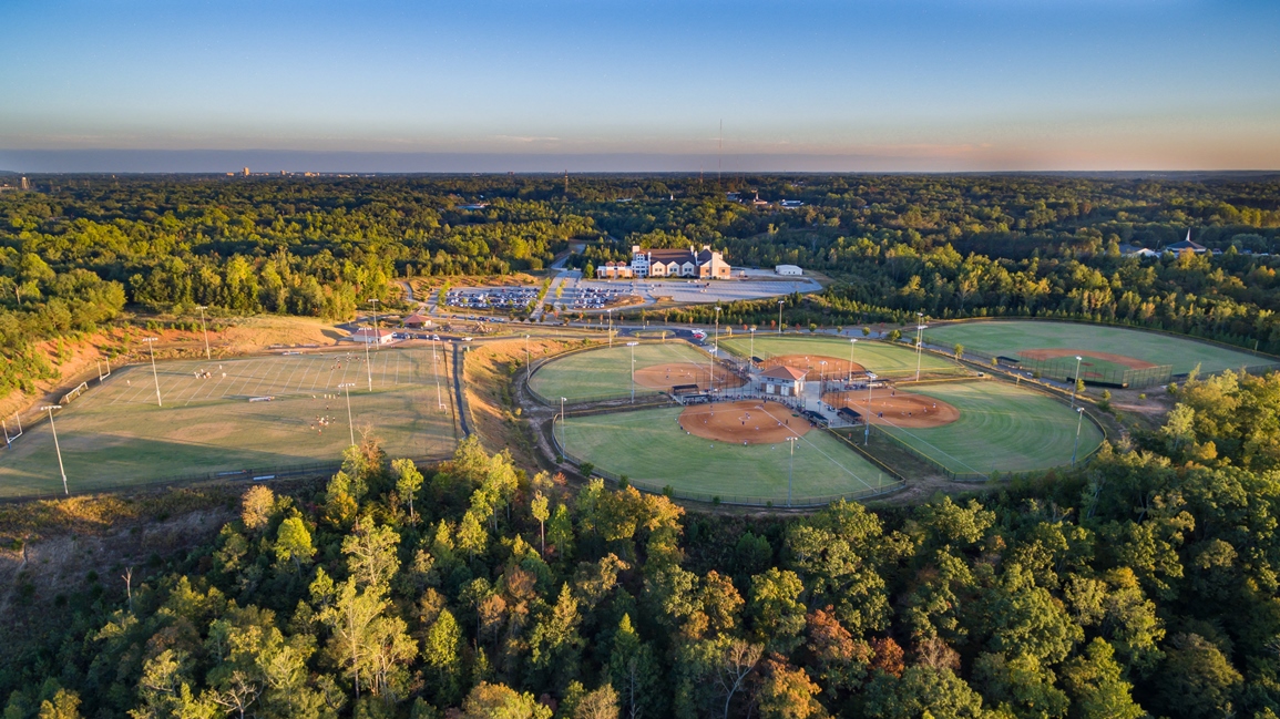 - Five baseball/softball fields, lights on all